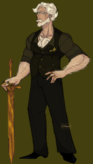 The general is a complex mix between anger, pain and determination. Initially, he's motivated by justice and the balance of chaos in our reality, however, as the day passes, we notice he's more biased for the supposition of finally finding inner peace if he contains the paranormal, as a representation of the deep wish he has for his own redemption caused mainly by his arrogant nature. Atticus is cold, violent, rude and intelligent if it pleases him. He does not means harms to those who come across as innocents to him, but will do his worse if he sees in you some kind of threat.He's the co-leader of the antiparanormal agency V.A. (Veritas Agency), and in meantime takes his work on his own army. He grew up in a vile world, and it got worse as he acknowledged the paranormal with Eudoria, his "sister from another mother", which, ironically enough, is from the family that once was his own's rival. The only that knows about his tiring routine, outside of his wife Miss, is the blonde eagle Jade, who is blind in one eye just like he is.Flames, Miss's biological son and adopted emotionally by him since he was inside his mother's belly, is one of his motivations to change to a better person, as well. He's sixty two, stands around six feet and six inches, and is blind of one eye from a scar with story to tell. He's the actual matriarch of the Frossard family. He's an ISTJ personality character.