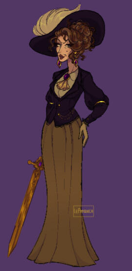 The leader of Veritas Agency, Eudoria is a french lady and naturally a great leader, full of charisma. Despite firstly coming off as cold and serious, later she can show her traits of being funny and friendly, determinated to reach her goals in combating the spreadness of the paranormal. Her absence is significant in most of times, due how busy she is taking care of all her workers and, indirectly, of her family. Eudoria is the actual matriarch of the Laframboise family, a famous and rich french family with great power for centuries.She's a lovely woman and a fashion lover, drawing dresses in her spare time. Always trying to see the best in others and fuelling their determination and positivity, but can really be cold and tempered if you really attempt her. Sometimes acts lazy, and has a umbrella that carries everywhere. She's a widow, biological mother of two children, Mycroft and well, the other, followed his father's path and died too. An aunt to Selene and her two older siblings: Hermes and Asteria, not to mention their many cousins. However, after her older brother's death, their father, she adopts them. She also has a pet peacock named Louis.She represents the diamonds, while her sister Willelma represents the hearts, Darius the clubs and William is the spades. She's sixty two and stands in five feet and seven inches, and wears a gem that "magically" carries her golden sword inside. She's an ENTJ personality character.
