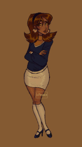 Confident and sassy, Miss is a outlaw and retired witch. Best described as rebellious and vehemently anti-authoritarian, she has little to no respects for law, assuming the mantle of leadership of the criminal group known as "The Bad Boys", comprising Rat, Crocodile, and herself. She's very famous around bars, known for winning multiple arm wrestling and beer competitions (and is always cheating in most of them, given her resistence to beer coming from her years of practice in magic, and super strength from the same cause) and her life stories.Classified as an anti villain, Miss is determinated to show to everyone how she's the baddest of all, craving approval for her behaviour driven by an insatiable thirst for applause. Beneath her outward bravado, and the shadows of her sorrowful past, Tess carries a compassionate and maternal heart, stealing from the rich to give to the poor, "Robin Hood" style, while acts like a outlaw. With each passing day, she endeavors to refine herself, aspiring to become a better person for those she holds dear. She's Flames's bio mom, Atticus's wife and Lilith's sister, and also has a german sheppard named Troy.She's sixty two years old, stands around five feet and three inches, and is the actual matriarch of the Volkomenn family, a really big family of blonde people with a lot of talents and, specially, strength and size. Sadly, they're all dissapeared, only remaning three people. She's an ENTP personality character.